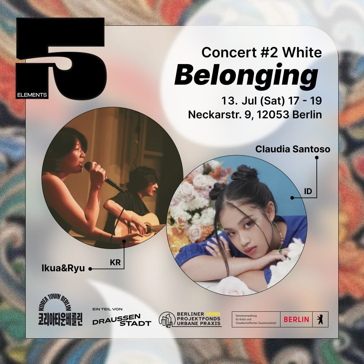 KTB ist eine Community koreanisch-stämmiger Künstler:innen, Aktivist:innen und Unternehmer:innen, die perspektivisch auf dem sogenannten Kindl-Areal in Berlin Neukölln eine koreanische Community-Markthalle betreiben möchten mit dem Ziel, der koreanischen Diaspora ein sicheres Zuhause zu geben und Brücken zu schlagen zwischen verschiedenen Lebenswelten. Mit 5 Elements beleben wir vor Ort die Kindl-treppe, die in einer “toten Ecke” liegt und oft Vandalismus ausgesetzt ist. Hierzu wird die Treppe gemeinsam mit der Nachbarschaft mit einem koreanischen Mural bemalt. Anschließend fungiert die Treppe als öffentliche Freiraumbühne für fünf Nachbarschaftskonzerte. Bei jedem Konzert treten jeweils eine koreanische und eine lokale Musikerin auf. Unterrepräsentierten und marginalisierten Künstler.innen wird so eine Bühne geboten, die fest im Kiez verankert ist. Wir wollen Brücken schlagen zwischen verschiedenen Lebenswelten, zwischen Berlin und Seoul, Tradition und Moderne, Subkultur und Mainstream.