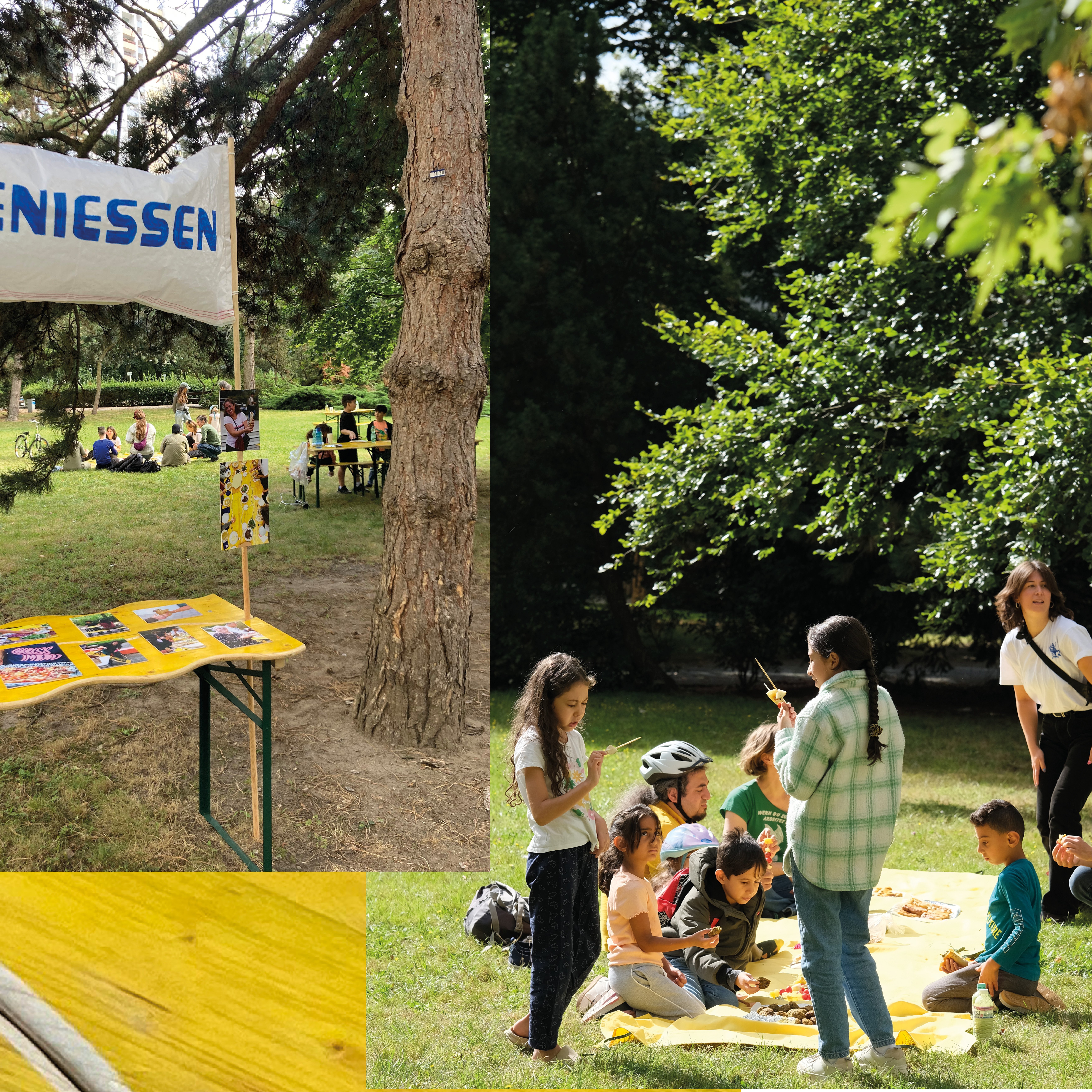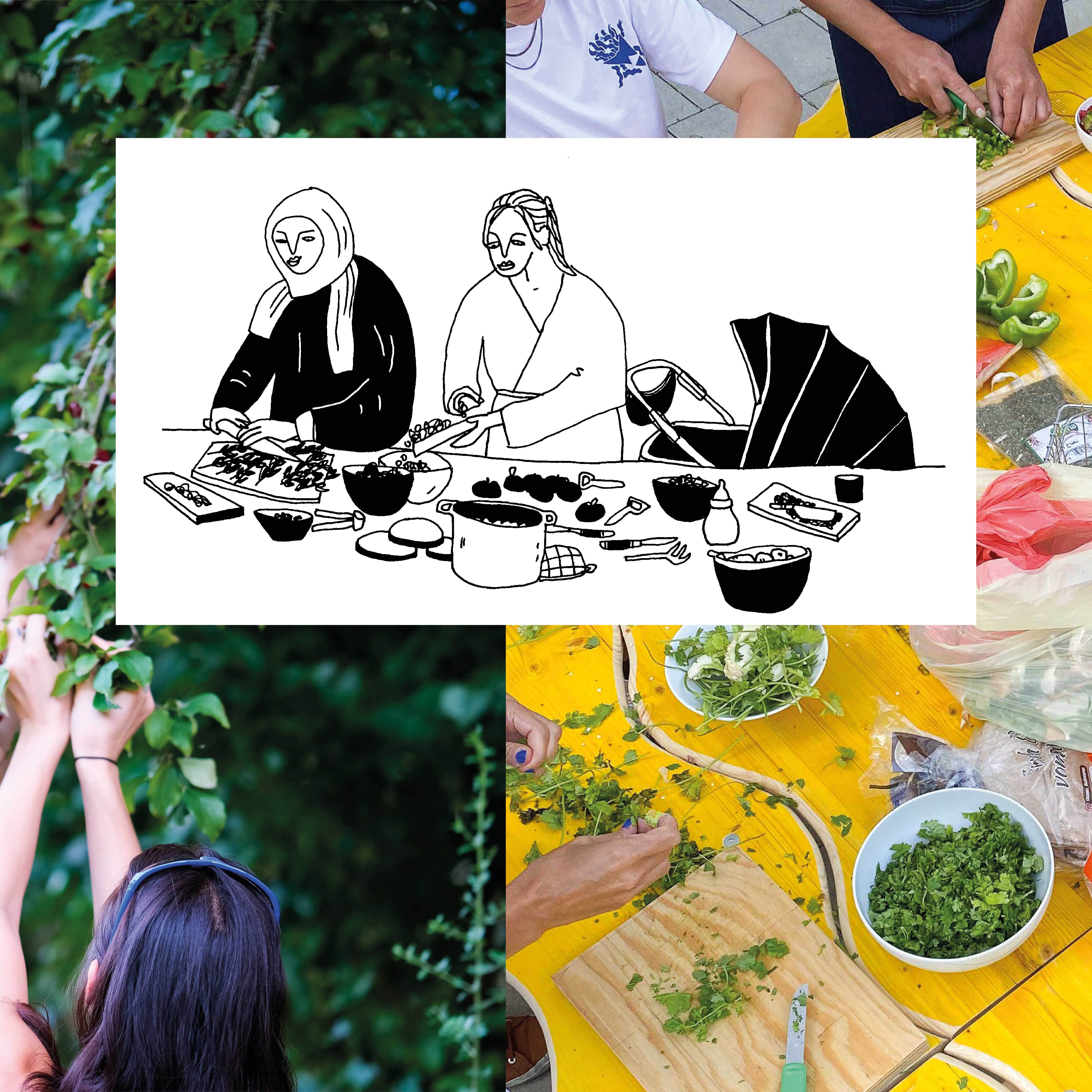 Der Bauen Workshop gibt uns die erste Gelegenheit, eine gemeinsame Erfahrung zu machen und uns den öffentlichen Raum anzueignen mit unserer ”Willkommensstation”. Sobald sie fertiggestellt ist, wird sie für Workshops und Veranstaltungen genutzt, die für alle offen sind und sich um das gemeinsame Kochen einer breiten Palette von Gerichten aus verschiedenen Kulturen drehen. All diese Erfahrungen und Geschichten werden auf unterschiedliche Weise gesammelt: schriftlich, durch Aufzeichnungen, durch Porträts von Menschen und Momenten und durch Kartierungen. Mit dem künstlerischen Material, das während der Veranstaltungen gesammelt wurde, werden wir eine Ausstellung im Freien kuratieren, die ein Porträt der heutigen Willkommenspraxis in der Gropiusstadt darstellt.